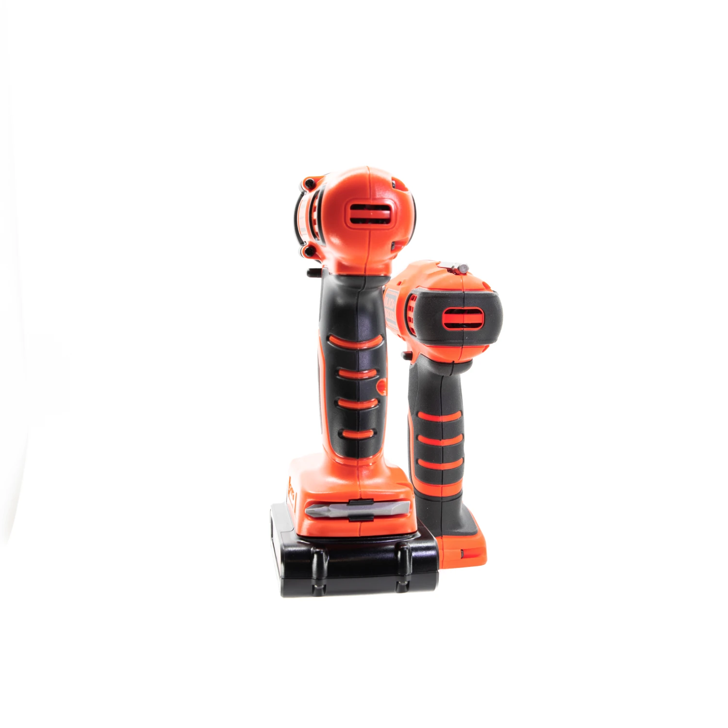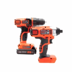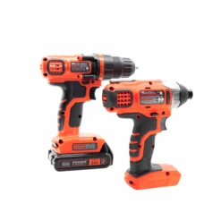 BLACK+DECKERŽ 20V MAX* 3/8 inch lightweight, compact, cordless drill/driver and impact driver combo kit. The drill has an 11-position clutch and a variable-speed trigger. The impact driver includes a quick-release 1/4 inch hex chuck. Both include a built-in LED work light, and both use interchangeable 20V MAX* POWERCONNECT⢠lithium ion batteries.