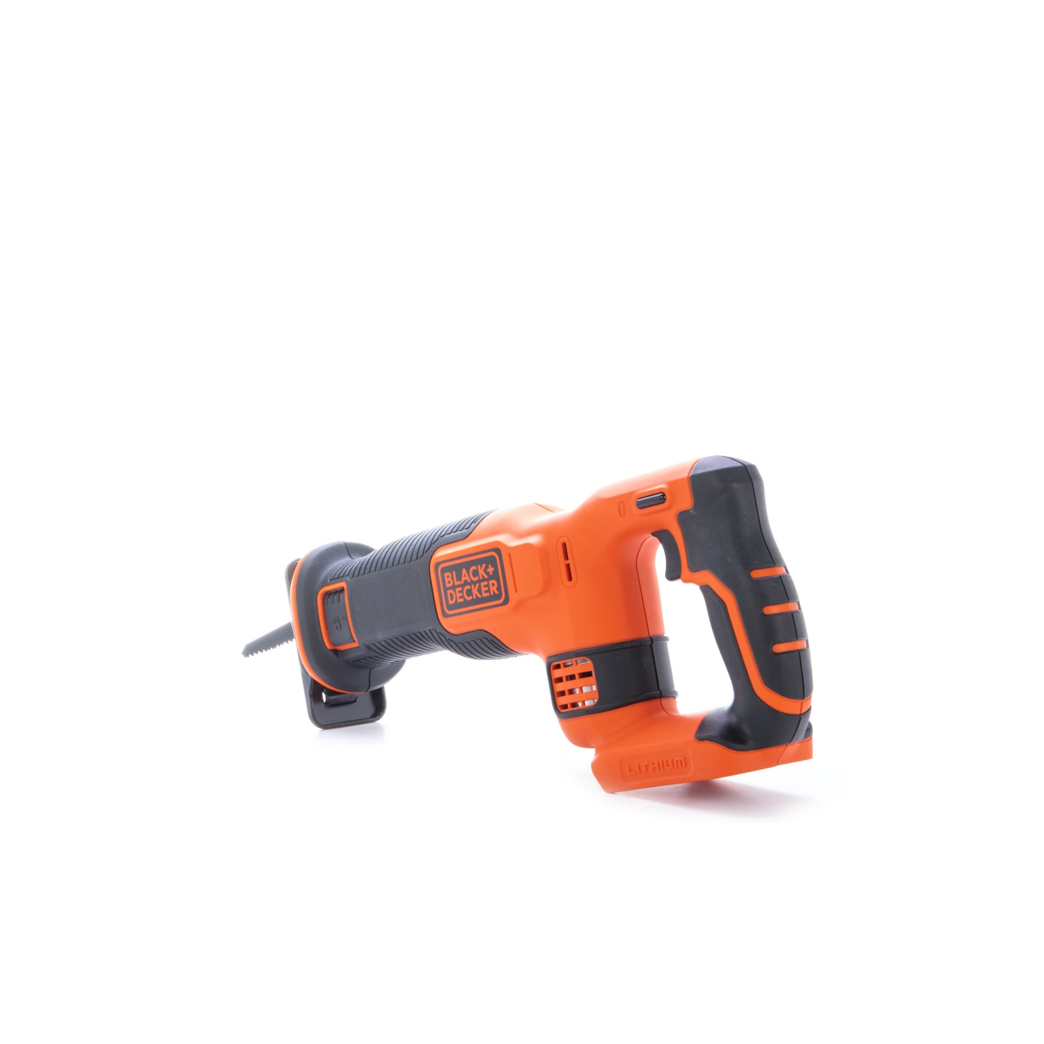 The BLACK+DECKER® 20V MAX* POWERCONNECT™ cordless reciprocating saw is lightweight, has a variable-speed trigger, and cuts up to 3,000 spm (strokes per minute). The blade shoe pivots and there is a built-in electric brake.