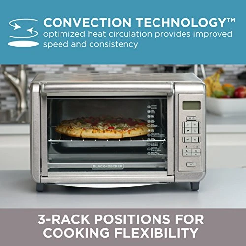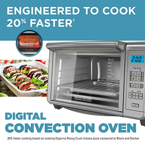 - Digital Controls – Easy-to-use buttons provide precision control over time, temperature, and functions: convection bake, broil, toast, bagel, reheat, pizza, and frozen snacks. The digital screen displays cooking information