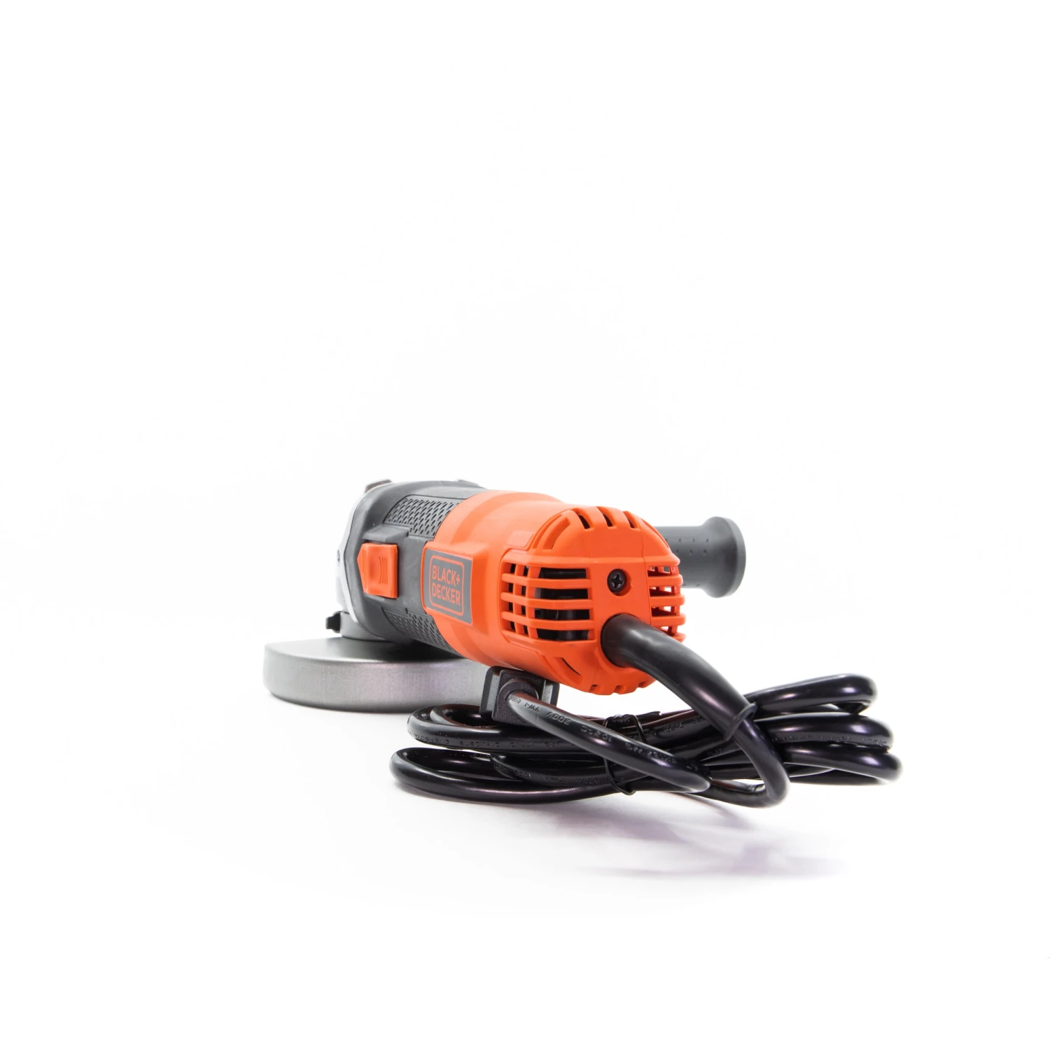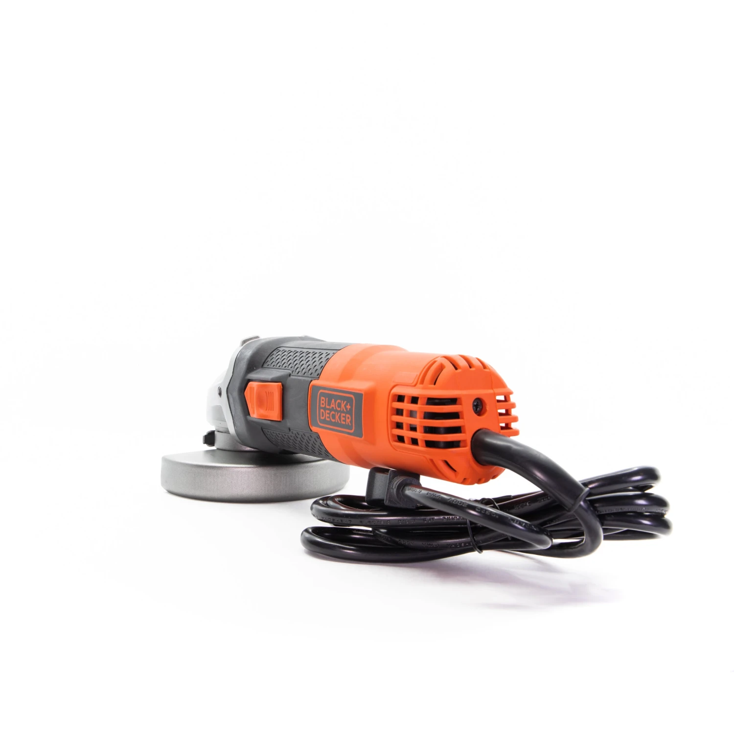 The BLACK+DECKER® BDEG400 4-1/2″ 6 Amp angle grinder includes a metal gear case and a 3-position side handle. It operates at 10,000 rpm (rotations per minute), with a spindle size range of 5/8″ – 11 “.