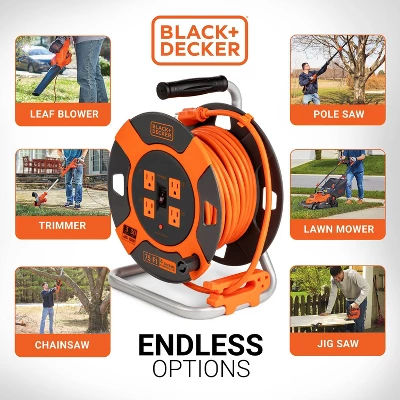 At BLACK + DECKER, we have made it our mission to provide high-quality household products and retractable electric cord reels that suit the needs of our customers. We have earned a reputation for quality, ingenuity, and value that you can depend on. Our CSA certified electric cord extension is the perfect solution to provide power while you’re working in your yard or garden so that you always have enough outlets for power tools, snow blowers, electric lawn mowers, and more. Always have the power you need anywhere with the BLACK + DECKER Extension Cord with Multi-Outlets!
