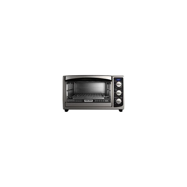 Start cooking fast and evenly with the Black+Decker convection toaster oven. This large, convection toaster oven has the ability to cook whole 9 in pizzas with ease. With the help of its 60 min timer you can bake, broil, toast and keep warm functions on the toaster oven. The set includes an oven rack, a bake pan and a broil pan to cook multiple dishes simultaneously. It also features an easy-view glass door to check on your dishes from time to time.