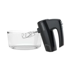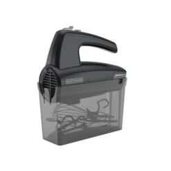 Mix whisk and knead with the improved design of this versatile 5-Speed Hand Mixer. This set includes two professional-style beaters two dough hooks and one chefĂs whisk; allowing you to quickly create cake and cookie batters bread doughs spreads and dips homemade whipped cream or whipped egg whites for a tasty meringue. The 285-watt peak power motor runs at five speeds including a 20% slower starting speed that keeps your countertop splatter-free. Plus a special turbo boost increases the mixer to maximum speed to combine thick ingredients in no time. All accessories are stored conveniently in the smartly designed storage case which uses the mixer itself as the snap-on cover. Cleanup is a breeze with the auto-eject button that quickly disconnects the dishwasher-safe mixing tools. Plus you can further prevent messes with the bowl rest which allows the mixer to sit upright on the edge of the bowl.