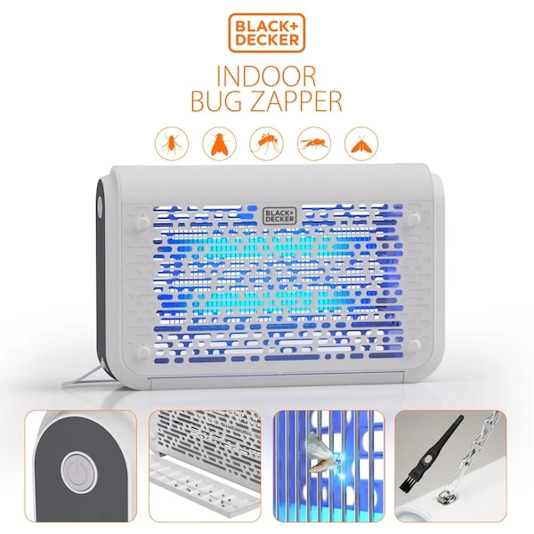 Banish bugs once and for all. Whether you’re dealing with biting backyard insects or persistent house flies, this electric Bug Zapper from BLACK+DECKER provides fast, reliable pest control with maximum coverage of up to 1 acre. The lantern’s long-lasting UV light emits a powerful glow-gentle to the eye, but tough on pesky bugs. Hang it up high, relax, and enjoy your indoor or outdoor space while the machine works its zapping magic. Once the party is over, pull out the collection tray, empty it into the garbage, and use the provided brush to restore the grid to a pristine clean. Designed for optimal safety and energy efficiency, our high-powered killer can also withstand rain, wind, and most non-severe weather conditions. So what are you waiting for, another bite? Take back the night, and add a Bug Zapper to your cart today.