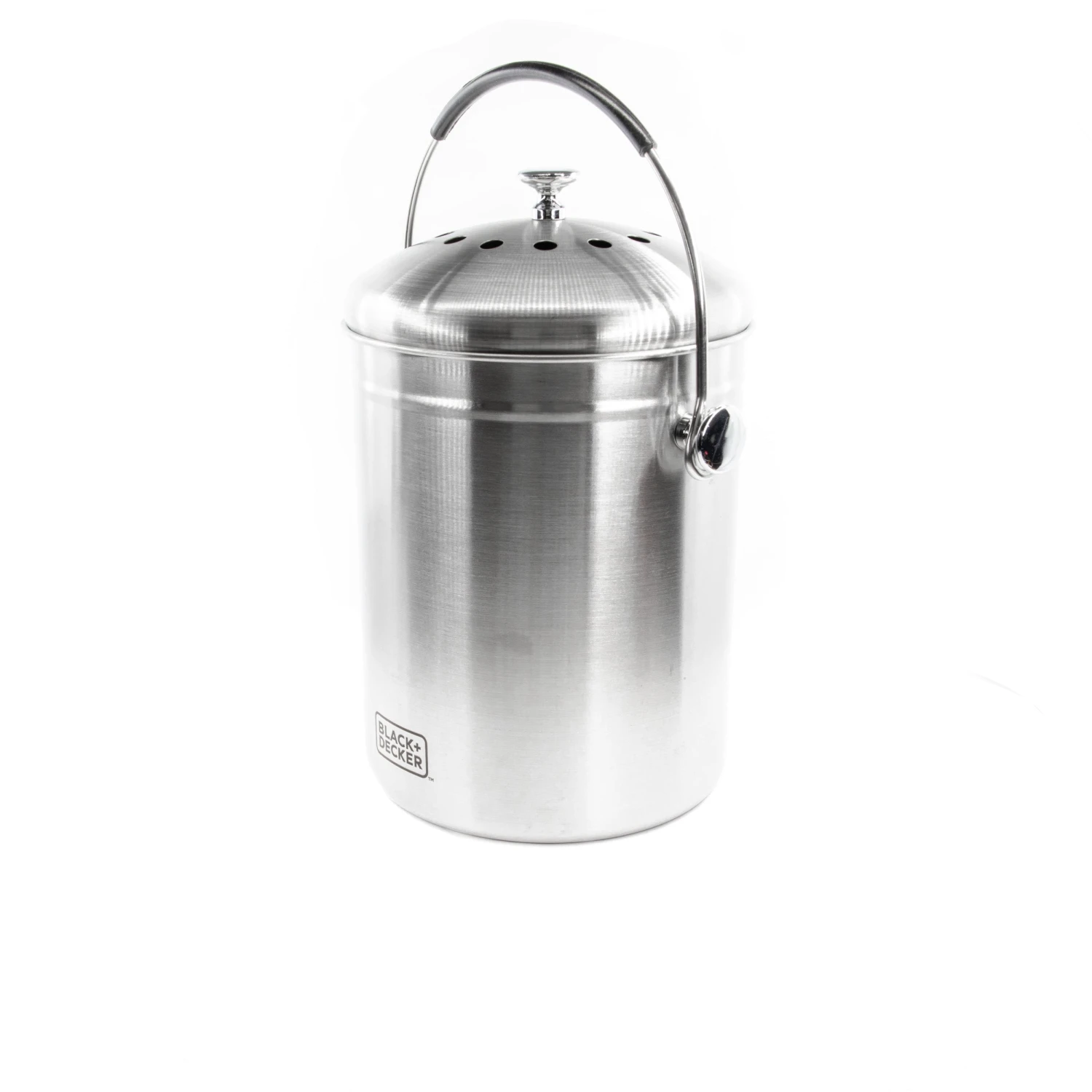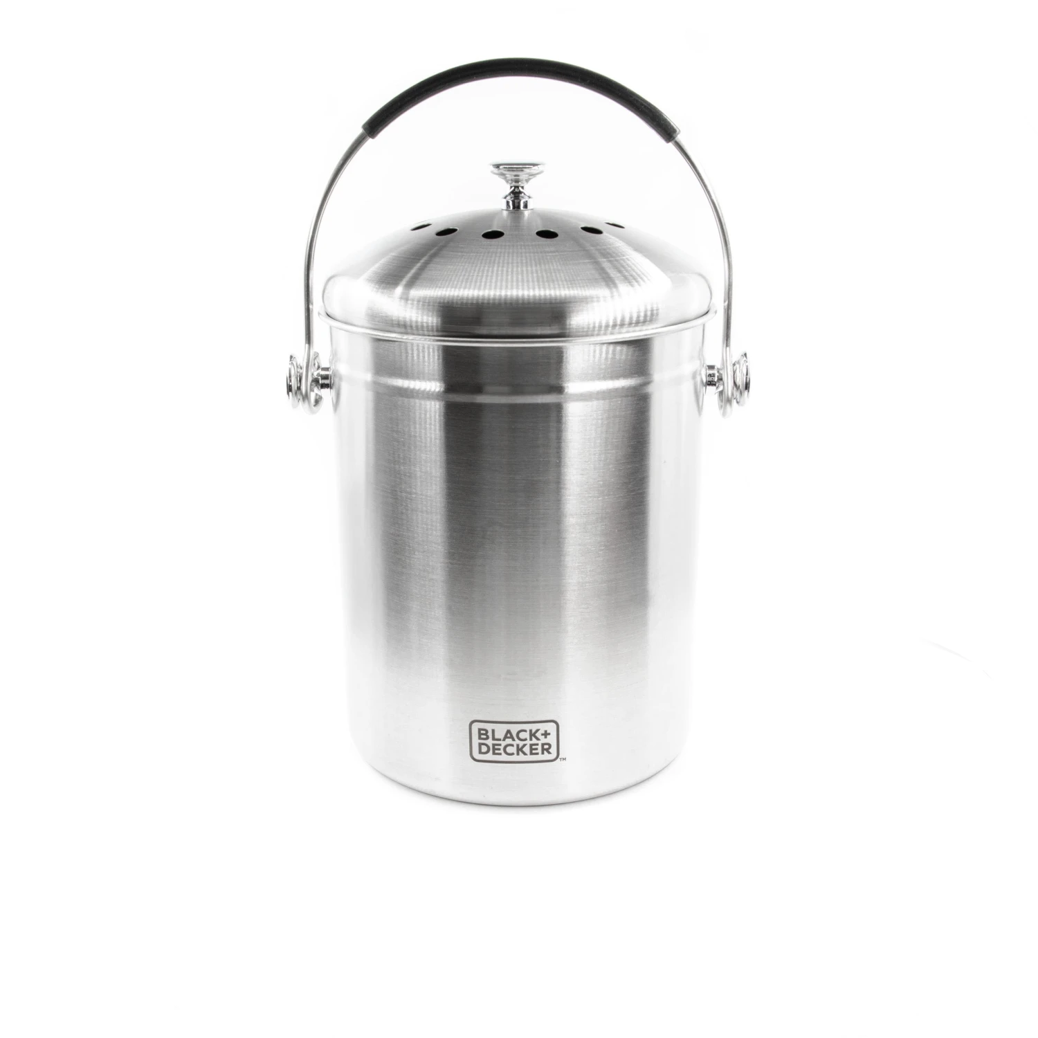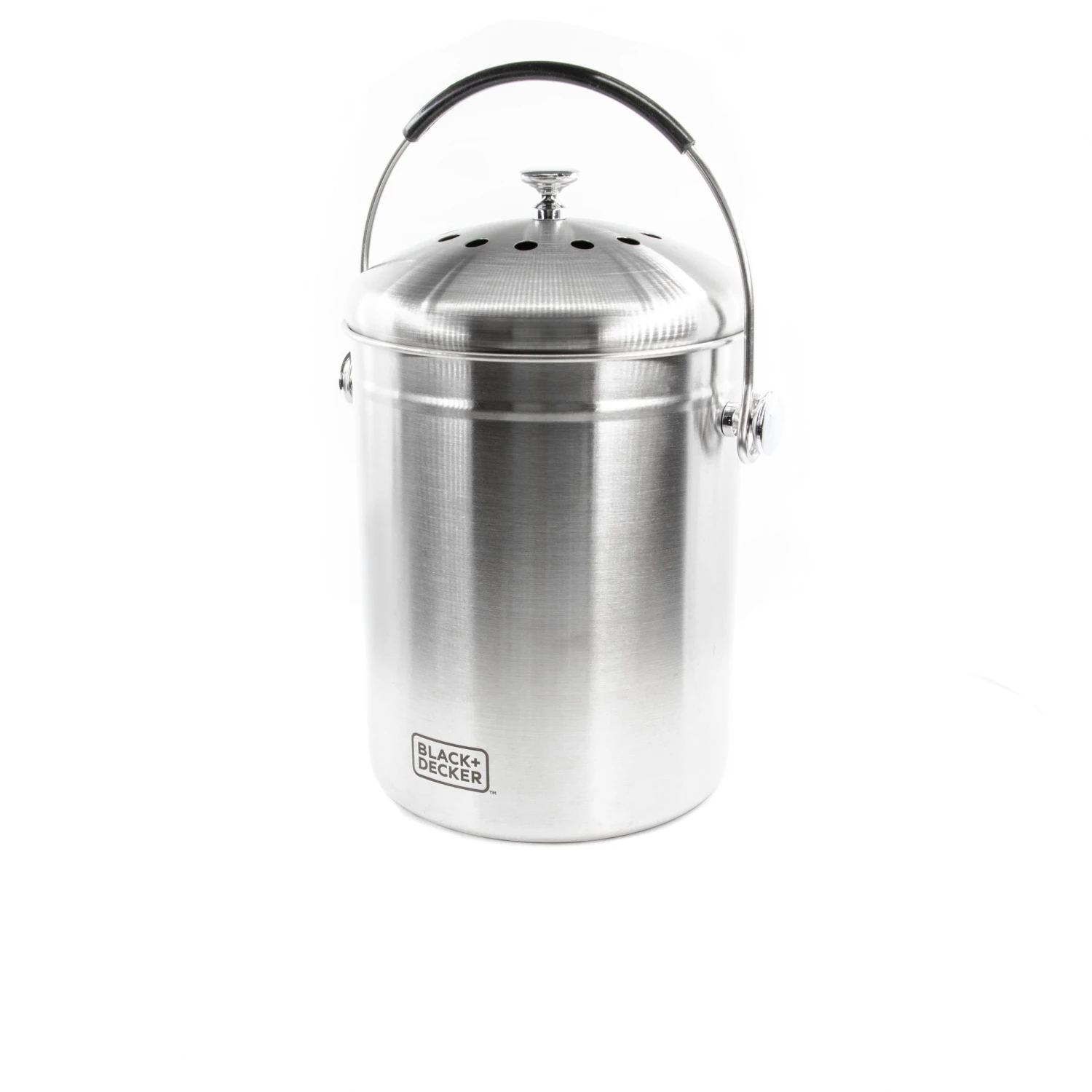 Reduce waste with the BLACK+DECKERĀ® countertop compost bin. It also looks good while doing it. Made from stainless steel, the silver bin mixes well with any decor and discretely holds food scraps until you’re ready to transfer them to an outdoor compost area.