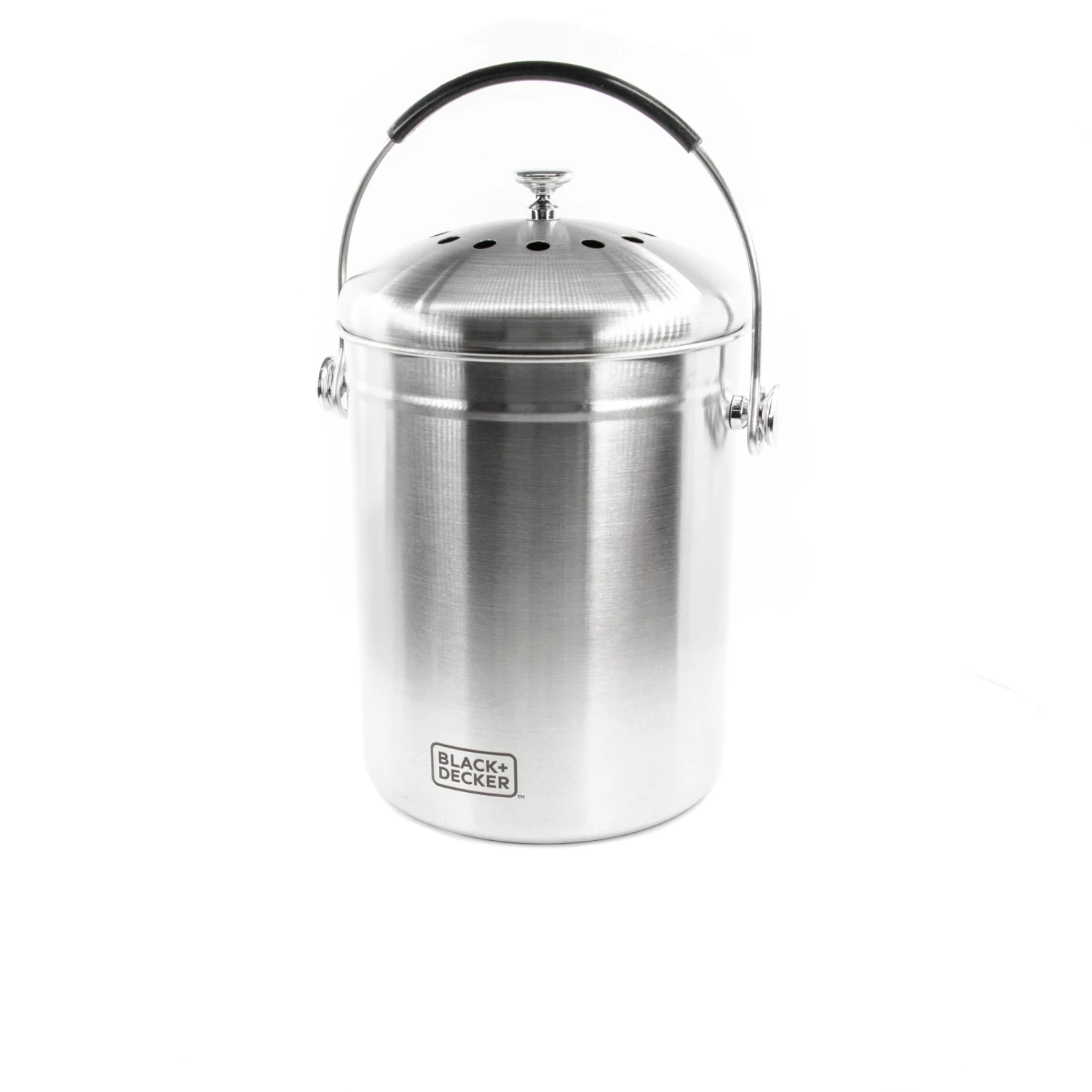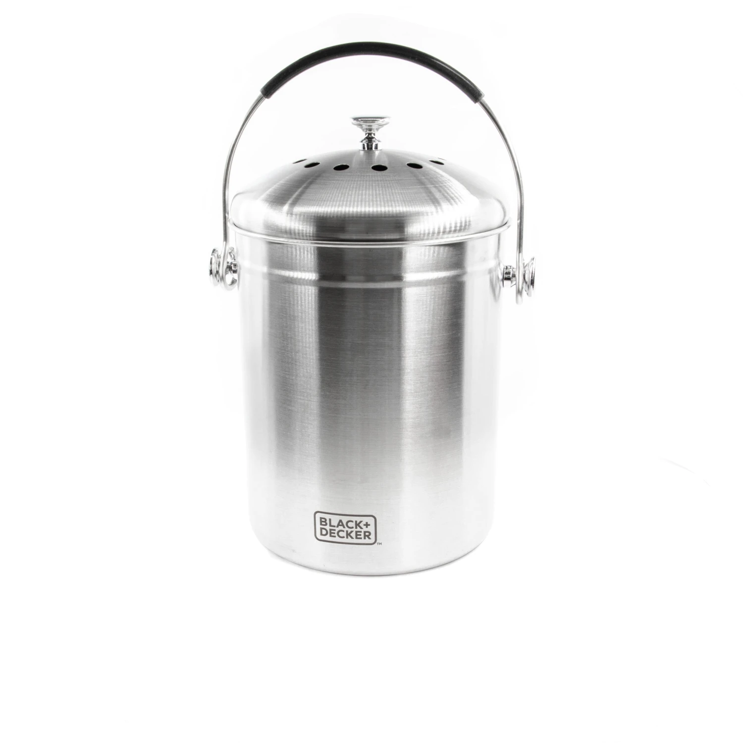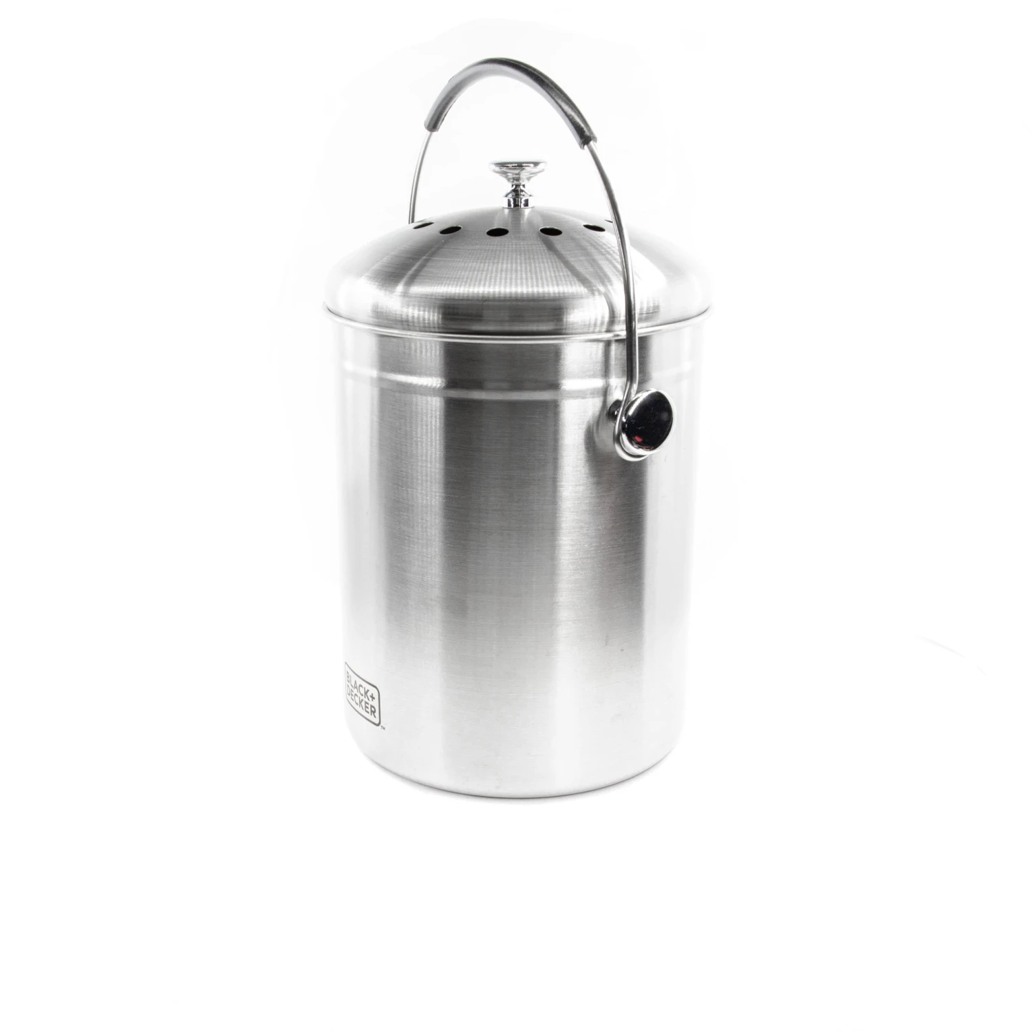 Reduce waste with the BLACK+DECKERĀ® countertop compost bin. It also looks good while doing it. Made from stainless steel, the silver bin mixes well with any decor and discretely holds food scraps until you’re ready to transfer them to an outdoor compost area.