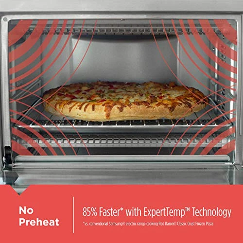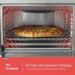 - Large Capacity – This countertop oven offers plenty of cooking space, with room for full family meals like a 12” pizza, roasts, and casseroles. It even fits eight slices of bread for fast toasting