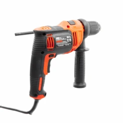 BLACK+DECKERĀ® 6.5 Amp, 1/2 inch corded electric hammer drill operates at 48,000 BPM and has a 2-position toggle switch and a 3-position comfort grip side handle. The single-sleeve keyless chuck accommodates bits up to 1/2 inch.