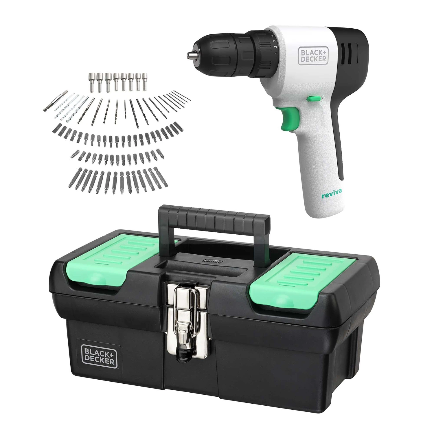 This BLACK+DECKERĀ® box keep your tools in one place using the reviva⢠toolbox bundle.Ā It’sĀ made with recycled materialĀ andĀ reviva⢠12V MAX* cordless drill/driver’s housing is made with Tritan Renew 50% certified recycled material.
